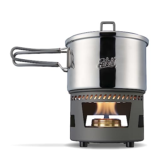 Esbit Spiritmatlagningsset – inkl. 1 500 ml kastrull – rostfritt stål – lock med lockupphängning – spritbrännare inkl. flamregulator med fällbart handtag