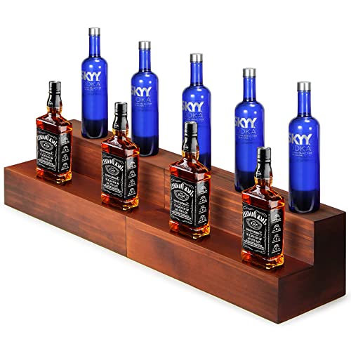 B4Life Visningshylla, 2 nivåer äkta trästänger hyllor för spritflaskor, barhylla för sprit, sprithylla för hembar sprithyllor flaskdisplay