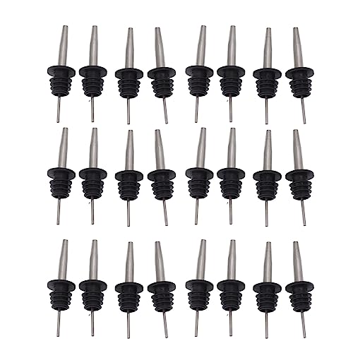 24-pack Flaskhällare i Rostfritt Stål, Hällpip för Sprit med Svart Plastlock för Spritpipar Flaska, Konisk Design Hällar för Spritflaskor Hällpipar Lock Lock