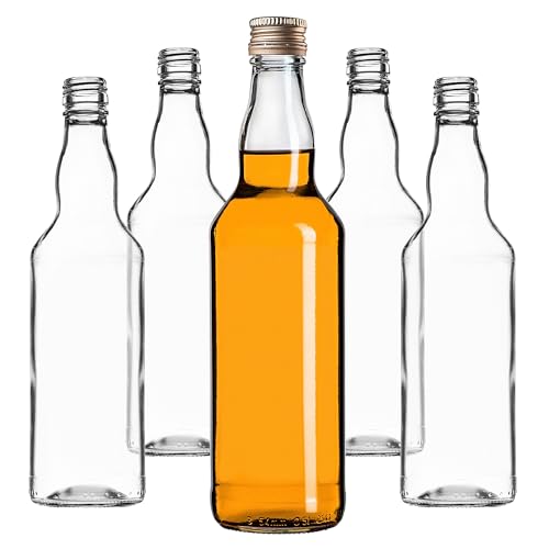KADAX Glasflaskor för fyllning, 500 ml, 10 stycken, tomma likörflaskor med skruvlock, juiceflaskor, flaskor för likör, spritflaskor (guld)