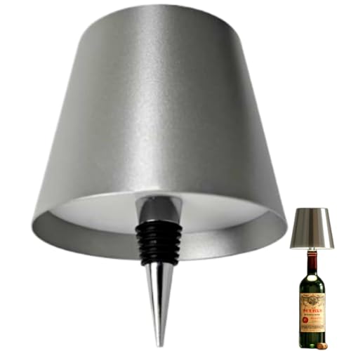 Trådlös flasklampa, 3 färger uppladdningsbara vinflasklampor kit för spritflaskor, batteridriven, uppladdningsbar bord skärm för restaurang, hem, bar, hem, kontor, jul (silver)