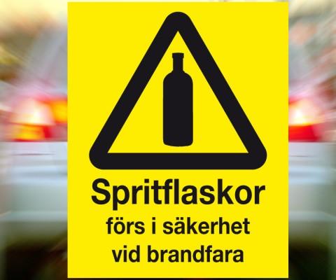 Klisterdekal "Spritflaskor förs i säkerhet vid brandfara"