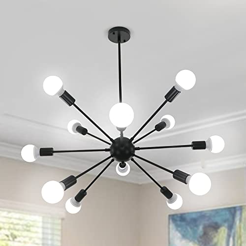 LynPon Sputnik ljuskrona 12 lampor vintage industriell lampa modern taklampa för matbord vardagsrum sovrum svart