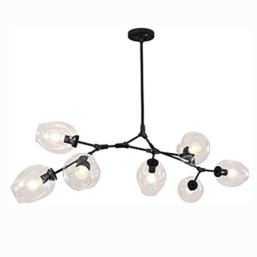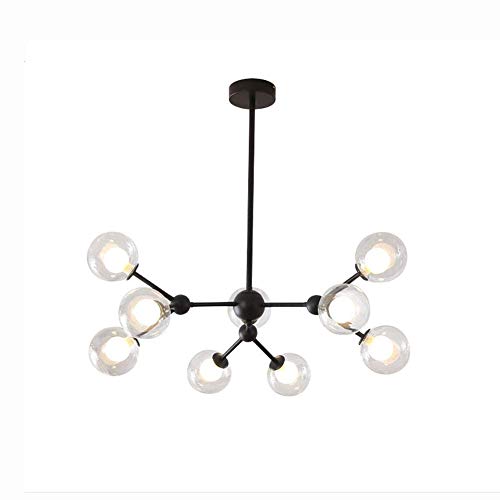 CCSUN Nordisk glasboll ljuskrona justerbar höjd, matt svart sputnik ljuskrona, E26 metall handblås grenar pendellampa, 180 cm mitten av århundradet glob ljusarmaturer transparent svart 8 lampor