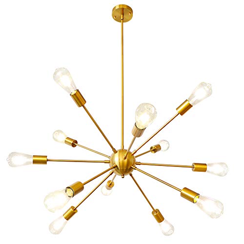 LynPon sputnik-ljuskrona i guld, modern hängande taklampa i mässing, 12 lampor, industriell belysning passande för kök, matsal, vardagsrum, sovrum