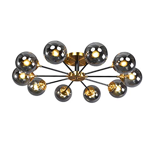KRIPINC Sputnik ljuskrona, Sputnik taklampa, halvinfälld taklampa med 12 lampor, taklampa med glaskula, gyllene ljuskrona, glaskula, för vardagsrum, sovrum, matsal, kök