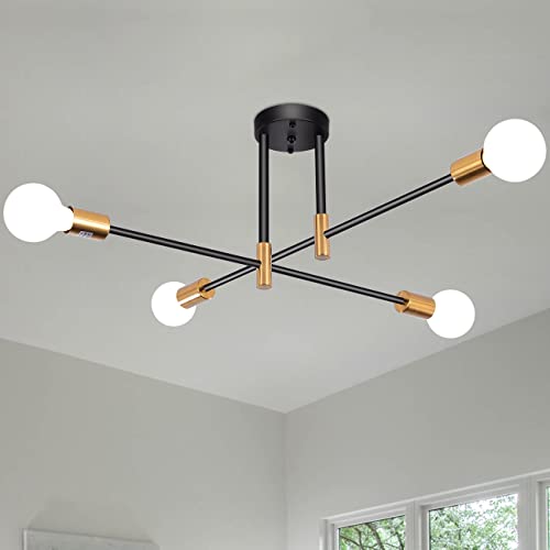 Sputnik Ljuskrona Industriell Halvinfälld Tak 4 lampor Vintage Hängande ljus E27 Svart och guld Taklampa för vardagsrummet Kök Sovrum Matrum Loft (4-lights)