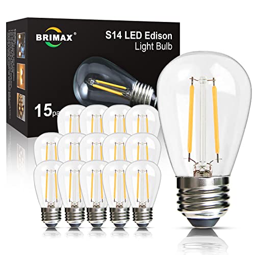 BRIMAX e27 varmvit LED-lampa, 2W motsvarande 20W glödlampor, 2700K e27 ersättningslampa för S14 dekorativa kedjor, bordslampor, Sputnik ljuskrona, Förpackning med 15