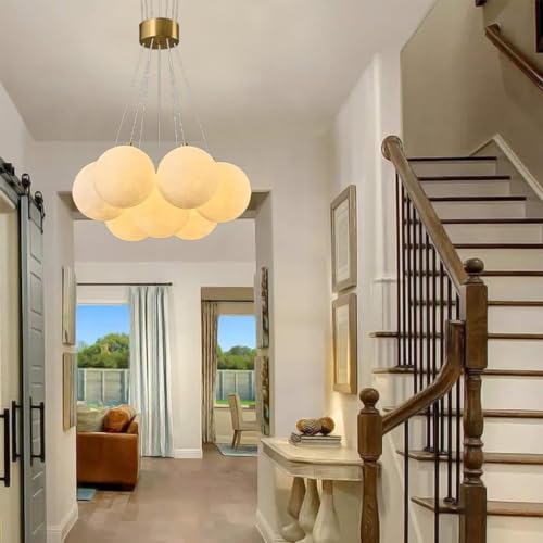 RuiRfh Modern 13-ljus stort vardagsrum guld Pendellampa med vit sfärisk lampskärm taklampa liten sfärisk Hängande armaturer hängande Sputnik ljuskrona för kök sovrum matsal(7 heads)