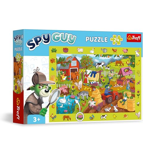 Trefl - Observationspussel Spy Guy: Gård - 24 bitar - Hitta alla föremål från ramen, Färgglatt pussel fulla av detaljer, Perceptiv träning för barn över 3 år
