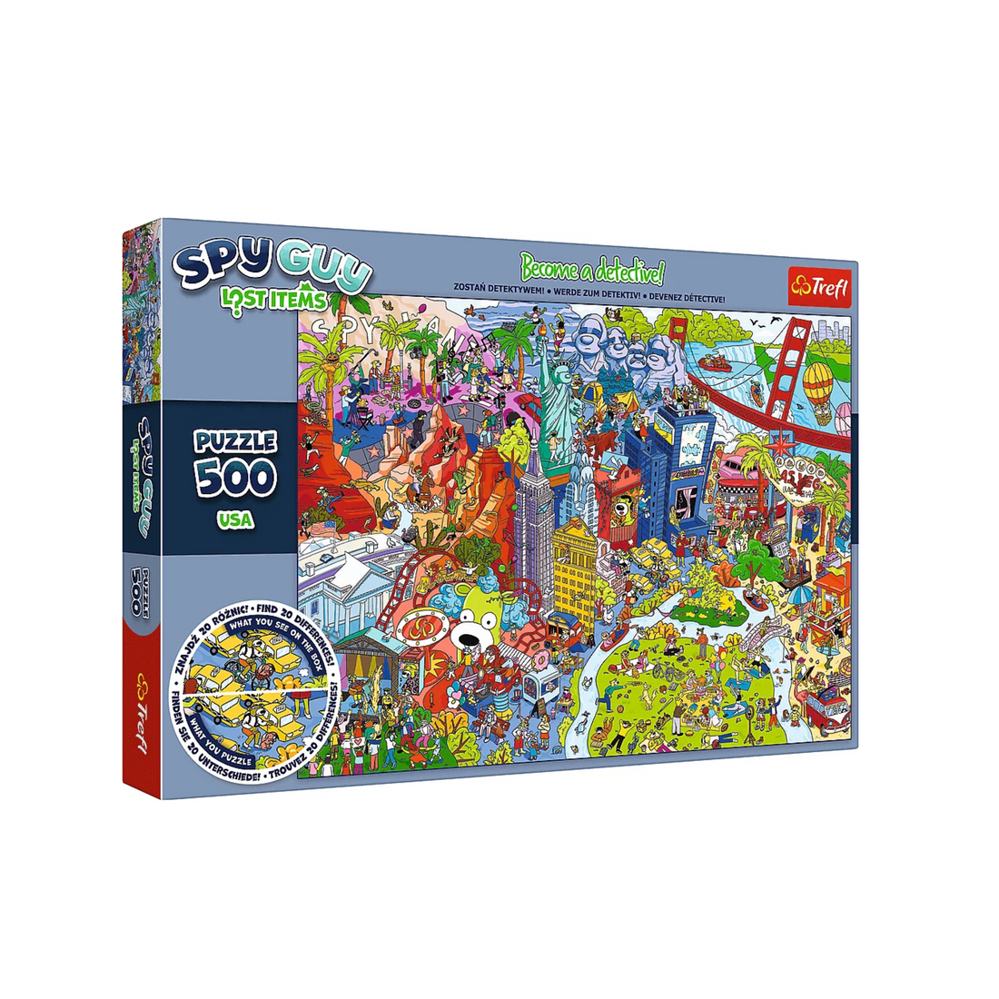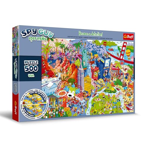Trefl – Puzzle Spy Guy Lost Items: USA – 500 bitar, Bli en detektiv och hitta 20 skillnader, Borttappade föremål, Kreativ underhållning för vuxna och barn från 10 år