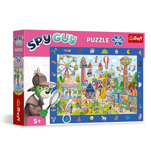 Trefl - Observationspussel Spy Guy: Nöjespark - 100 bitar - Hitta alla föremål från ramen, Färgglatt pussel fulla av detaljer, Perceptiv träning för barn över 5 år
