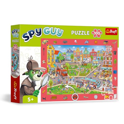 Trefl - Observationspussel Spy Guy: Stad - 100 bitar - Hitta alla föremål från ramen, Färgglatt pussel fulla av detaljer, Perceptiv träning för barn över 5 år