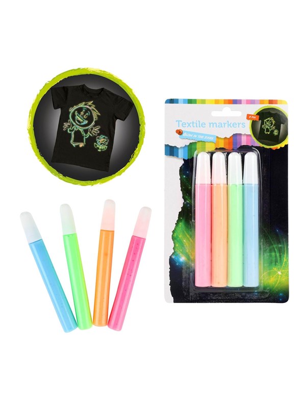 Toi-Toys Squeeze Textile Markers Glow in the Dark 4 pcs.