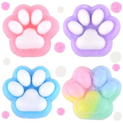 GWAWG Pack med 4 söta katttassar Squeeze Toys, Squishy Toy, Taba Squishy, Fufu Squishy, handgjord squishy Big Cat Paw för barn och vuxna