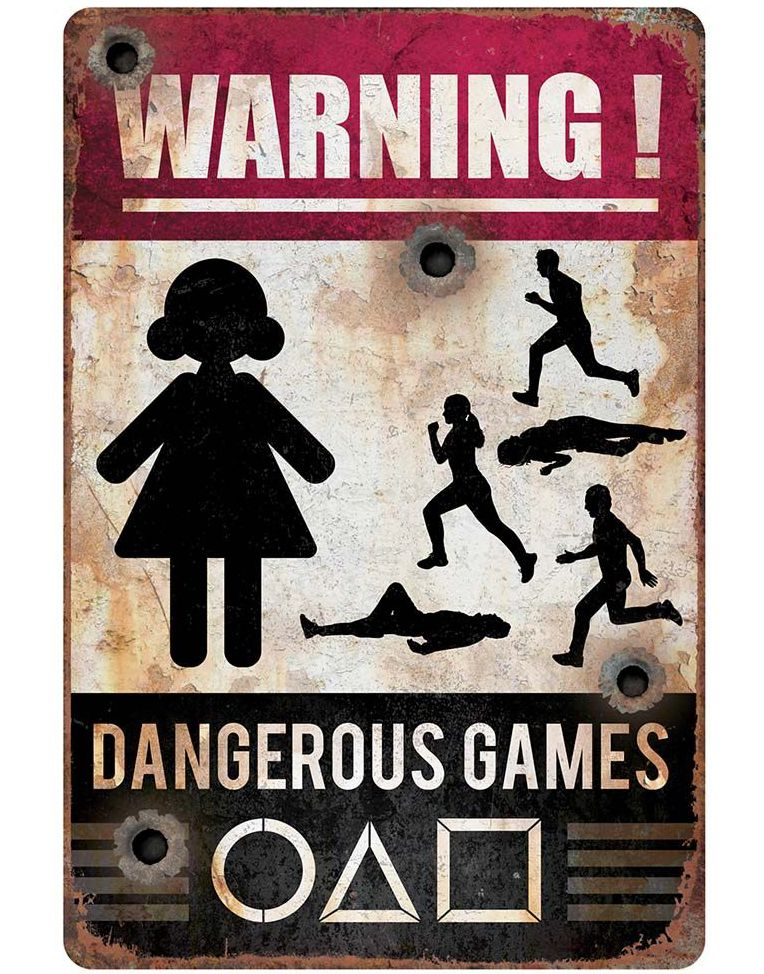 Varning! Farliga spel - Squid Game Inspirerad affisch/skylt 24x36 cm