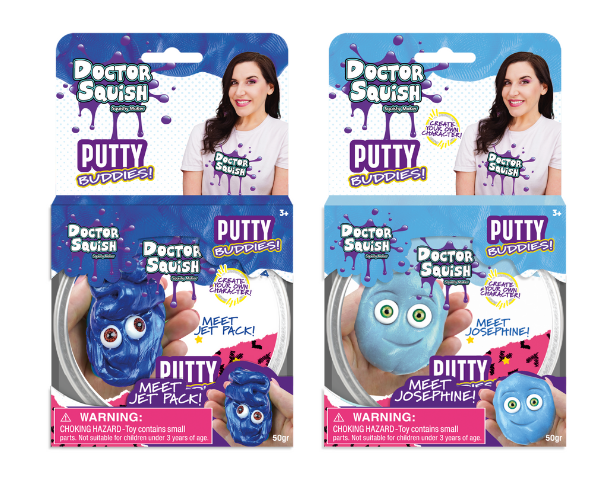 Doctor Squish – 2x Putty Buddies 50g - Jet Pack (Dark Blue) & Josephine (Light Blue)