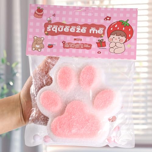 Katt Paw Squeeze Toy, Taba Squishy Fufu Squishy katttassar squishy stor 15x2cm, Paw Squishy, Anti-stressleksak fidget toys vuxen, soft cat paw squishy leksak, presenter för kattälskare,barn (Vit Rosa)