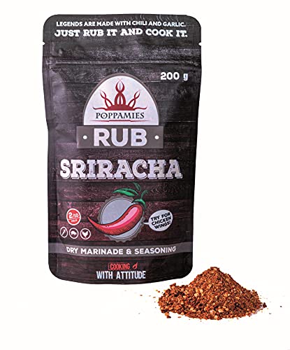 Poppamies Sriracha Rub - Torr Marinad & Krydda Perfekt för Grönsaker, Fläsk, Kyckling - Utmärkt för Grill, BBQ, Ugn - Stor Förpackning (200g)