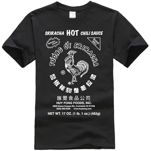 Sriracha het chilisås grafisk t-shirt tryckt topp t-shirt herr skjorta svart, Svart, L