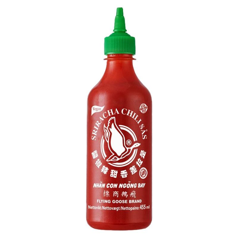 FLYING GOOSE Sriracha skarp chilisås – vass, grön mössa, kryddsås från Thailand, 1-pack (1 x 200 ml)