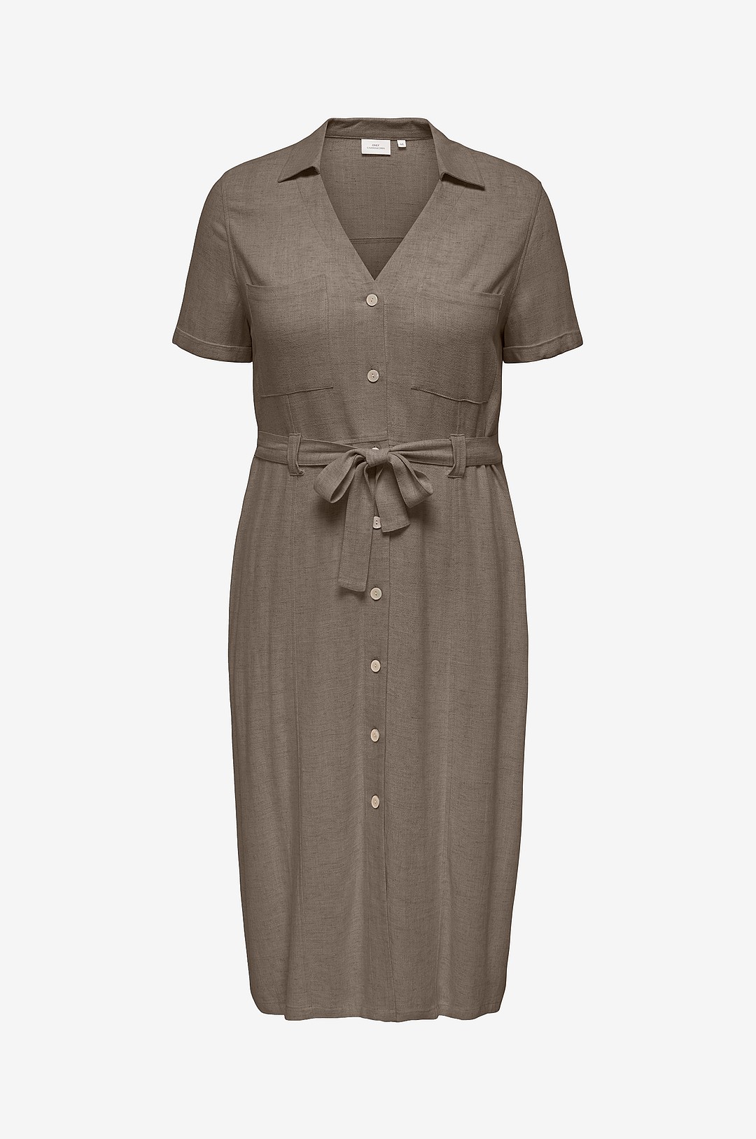 Only Carmakoma - Skjortklänning carSiesta SS Lin Bl Shirt Dress - Grå