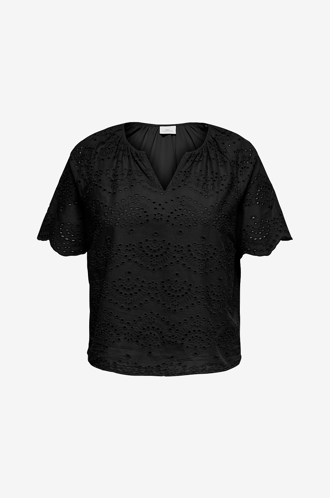Only Carmakoma - Blus carKajsa SS V-neck Top Wvn - Svart