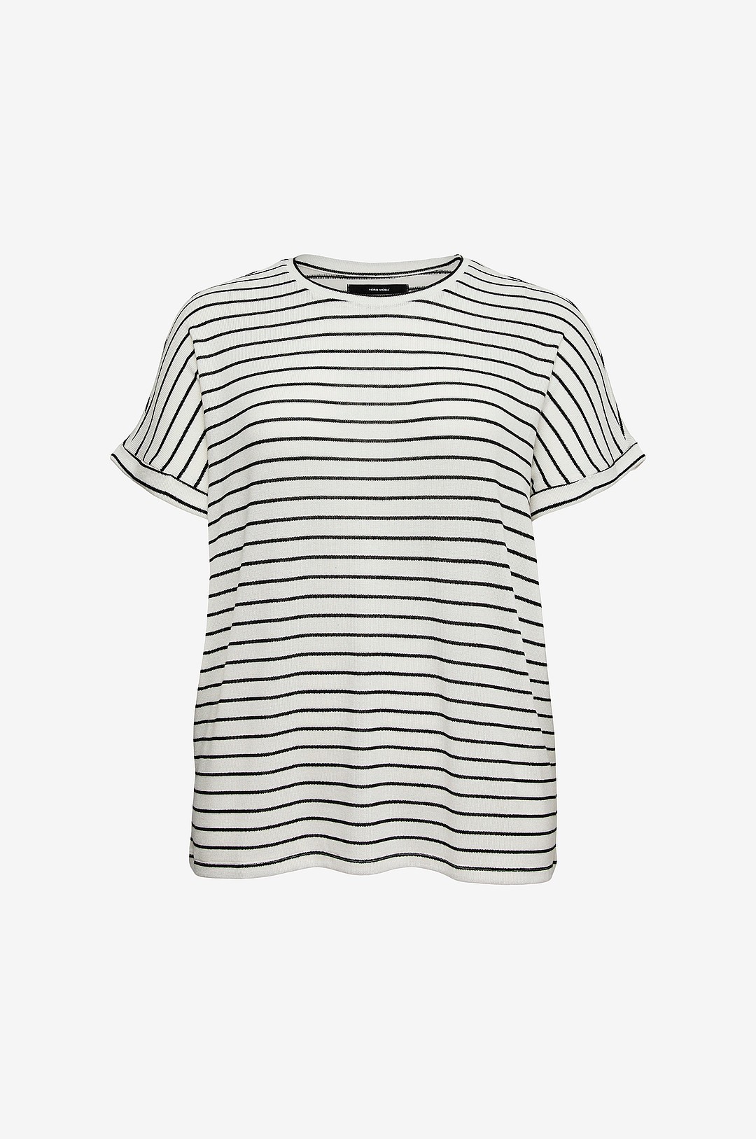 VERO MODA CURVE dam Vmaya Plain Ss Top Stripe Ga Noos Curve T-shirt, Svart/ränder: pristine, M