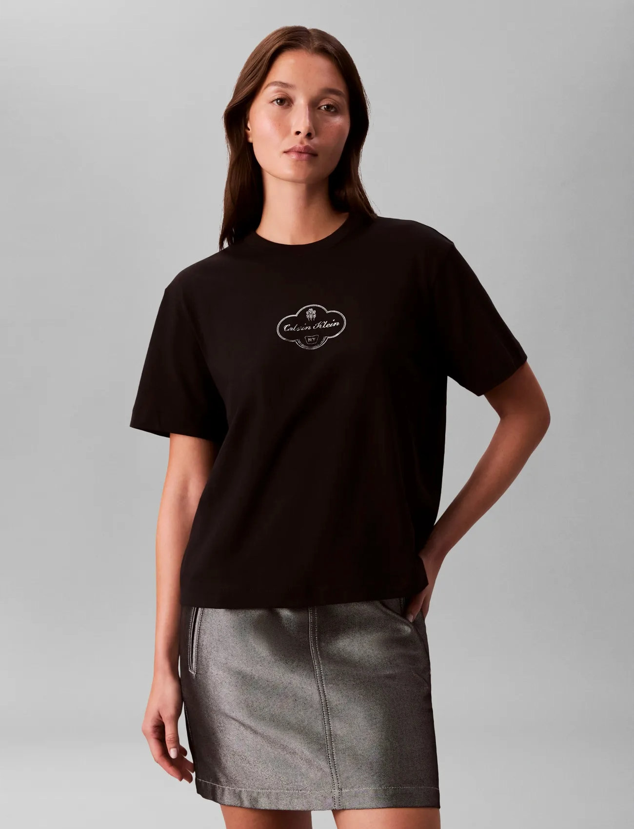 Calvin Klein Jeans Ss Boxy Coctail Logo Tee - Black - XS
