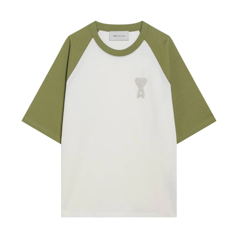 Ami Paris, Toppar , Dam, S, Bomull, SS Boxy Fit T-Shirt Med Logotyp Stickad Patch