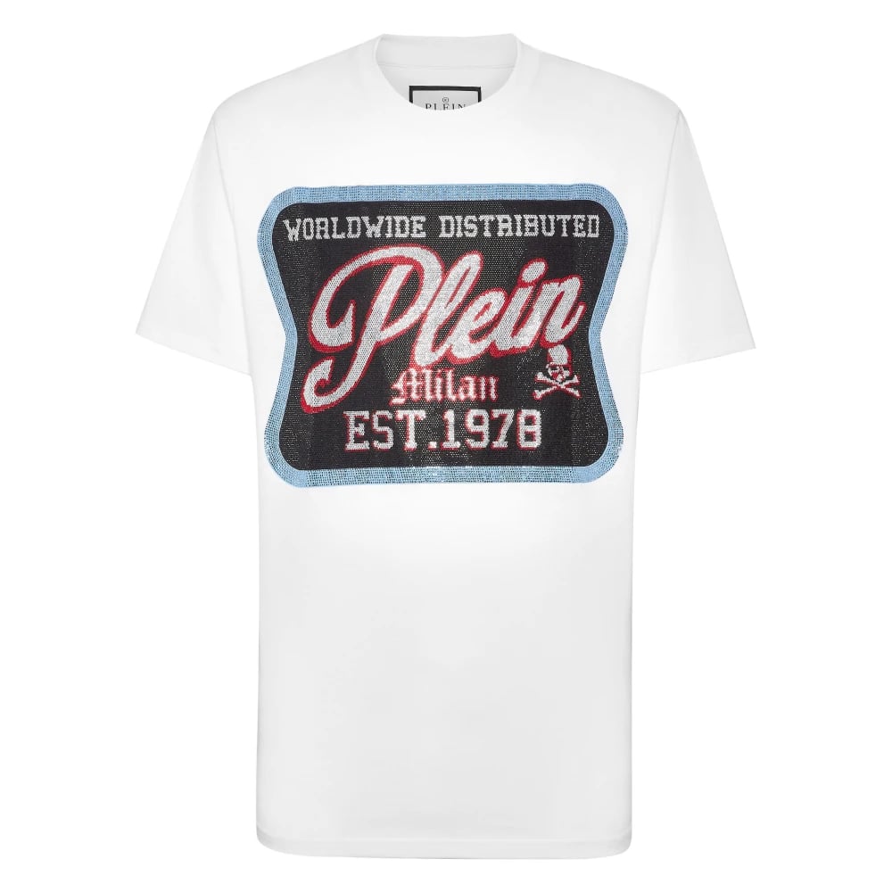 Philipp Plein, Toppar , Herr, 3Xl, Bomull, T-shirt Round Neck SS With Patch