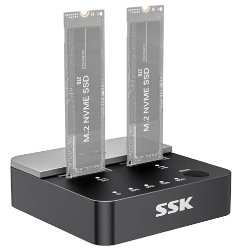 SSK Docknings Station 20 Gbps Dual Bay NVMe M.2 SSD-hölje, Verktygsfria Dockningsstationer för hårddiskar Adapter USB 3.2 Gen 2X2 Clone NVMe-hölje för M Key PCIE NVMe SSD-fodral