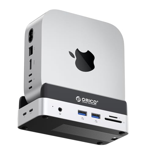 ORICO MiniDock Mac mini M4 Dock och stativ med NVMe SSD-hölje, USB C-hub med 2 USB-A 10 Gbps, SD/TF 3.0, perfekt för Mac mini M4/M4 Pro – VSE