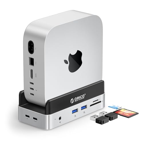 ORICO MiniDock Mac mini M4 Dock & stativ med icke-avtagbart 1 TB SSD-minne, USB C-hub med 2 USB-A 10 Gbps, SD/TF 3.0, perfekt för Mac mini M4/M4 Pro – VSE