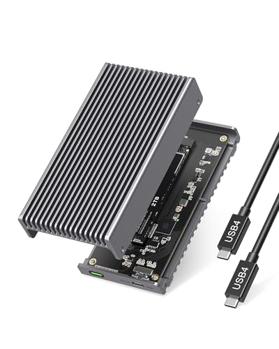 GEWOKLIY 40 Gbps M.2 NVMe-hölje, USB C aluminium externt SSD-hölje, Thunderbolt4/3, 8 TB SSD-adapter, PCIe Gen4, passar 2280/2260/2242/2230 mm M B+M-nyckel, mörkgrå