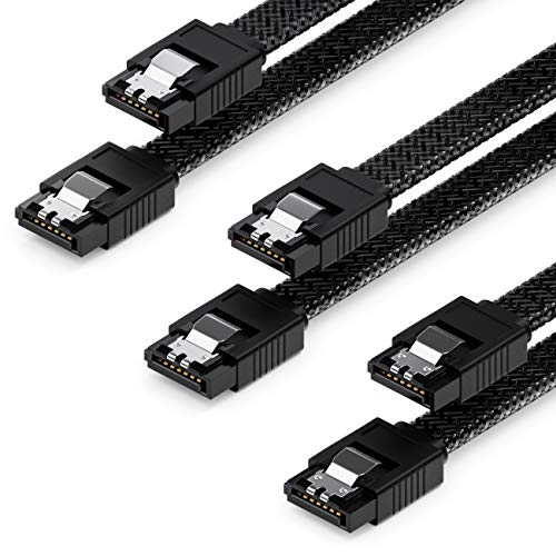 SATA-kabel III, Benfei 3-pack SATA-kabel III 6 Gbps rak HDD SDD-datakabel med låsspärr 18 tum för SATA HDD, SSD, CD-drivrutin, CD-skrivare – svart