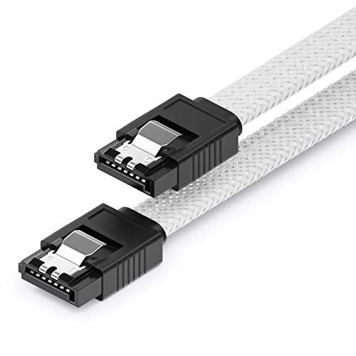 deleyCON 60 cm SATA 3 Kabel Nylon 6 Gbit/s Datakabel SATA III Anslutningskabel Seriell ATA Anslutningskabel för Moderkort & Hårddisk HDD SSD 2 S-ATA L Kontakt Rak Vit