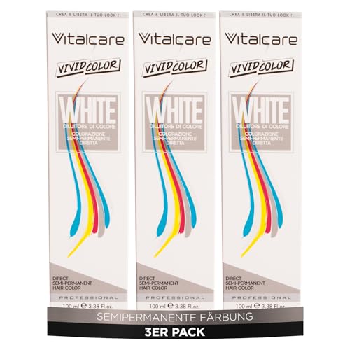 Vitalcare | Levande, professionell halvpermanent färgning, hårfärgningsspädare, direkt hårfärg, livslängd upp till 20 tvättar, mjukt och återfuktat hår, vit färg, 3 st x 100 ml
