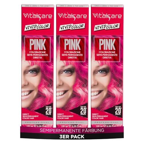 Vitalcare | Vivid, professionell halvpermanent färgning, hårfärg, direkt hårfärg, livslängd upp till 20 tvättar, mjukt och återfuktat hår, rosa, flerpack 3 st x 100 ml