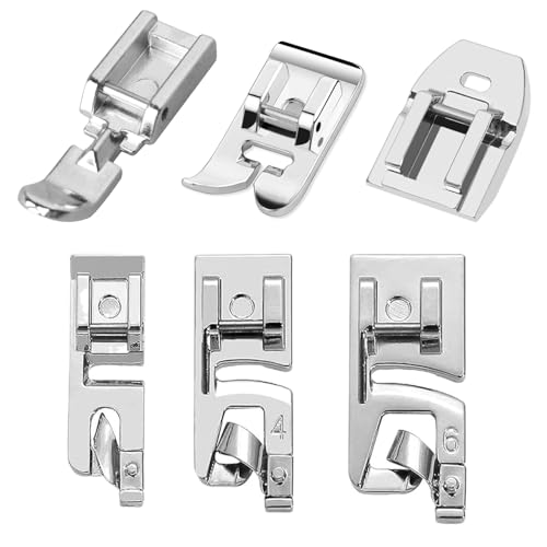 ARJDXDP 6 st pressarfotsset, rostfritt stål, alla ändamål, dragkedja, rullad fåll, direkt blixtlåsfot, kompatibel med bror, Janome, Toyota, sångare