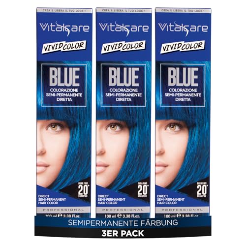 Vitalcare | Levande professionell halvpermanent färgning, hårfärg, direkt hårfärg, livslängd upp till 20 tvättar, mjukt och återfuktat hår, blått, flerpack 3 st x 100 ml
