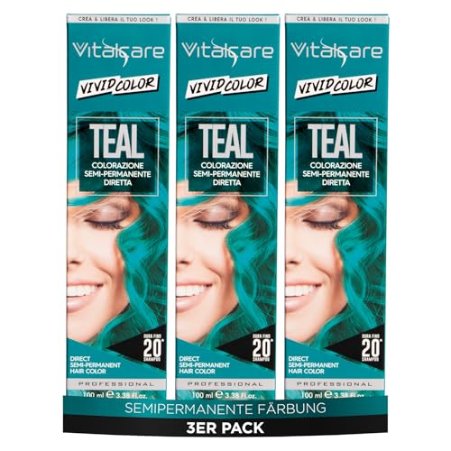 Vitalcare | Vivid, professionell halvpermanent färgning, hårfärg, direkt hårfärg, livslängd upp till 20 tvättar, mjukt och återfuktat hår, blågrön, flerpack 3 st x 100 ml