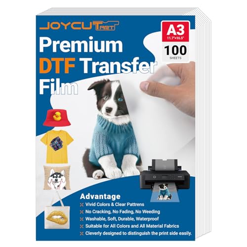 JOYCUT DTF överföringsfilm – A3 (11,7 x 16,5 cm) 100 ark dubbelsidig matt finish, DTF-film för sublimering och DTF-bläckstråleskrivare, direkt till filmöverföringspapper för t-shirts, JC A3 100 st