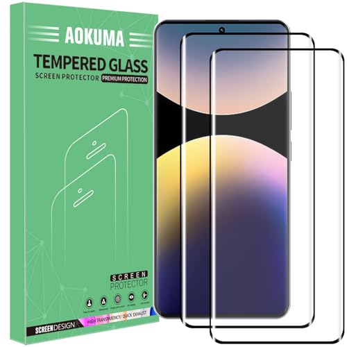 AOKUMA 3D-skärmskydd för Redmi Note 14 Pro 4G/Poco M7 Pro 5G/Poco F5 Pro, [2 st] 3D-härdat glas för Redmi Note 14 Pro, enkel installation, bubbelfri, högupplöst, 9H hårdhet