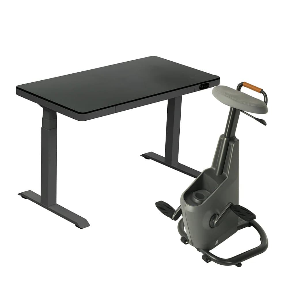 LifeSpan Ampera skrivbordscykel med elektriskt justerbart sitt-stå-skrivbord med glasskiva (grå)