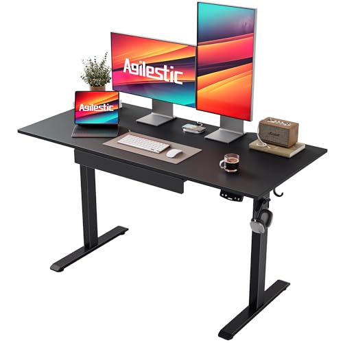 Agilestic elektriskt höj- och sänkbart skrivbord med integrerad låda, 120 x 60 cm, höj- och sänkbart sitt-stå skrivbord med minneshandkontroller, lämplig för hemmakontor, svart