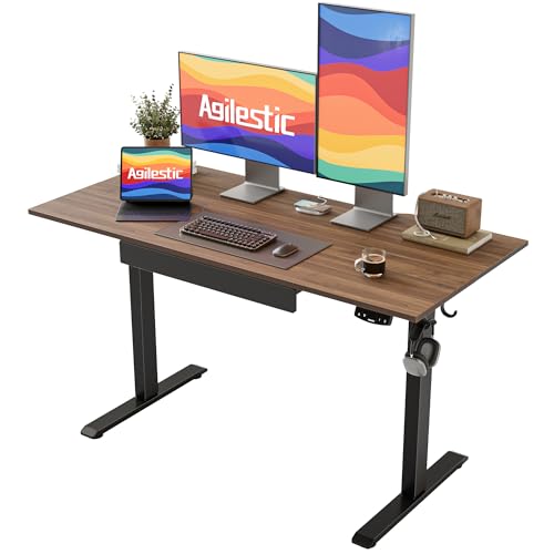 Agilestic elektriskt höjdjusterbart skrivbord med integrerade lådor, 120 x 60 cm, höjdjusterbart sitt-stå-skrivbord med minneshandkontroller för hemmakontor, brun.