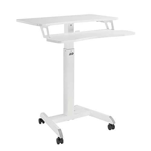 Ergo Office ER-444 Höjdjusterbart Sitt-Stå Skrivbord Med Hjul Arbetsstation Med Dubbel Plattform Belastbar Upp Till 8 kg Gasfjäder (Vit)