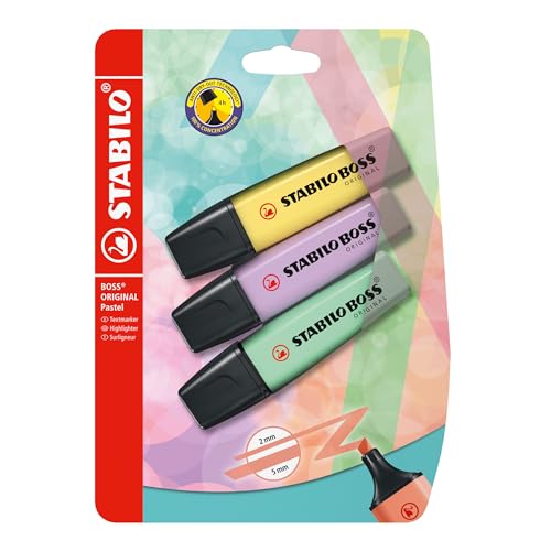 Överstrykningspenna - STABILO BOSS ORIGINAL Pastel 3 blandade färger