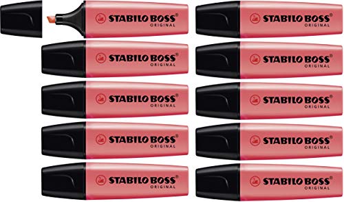 Överstrykningspenna - STABILO BOSS ORIGINAL ask med 10 Röd (Laxrosa)